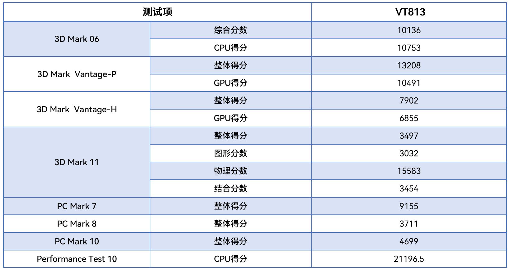 从不同测试软件的跑分情况可以看出,VT813在图形渲染、物理运算及整机综合性能等方面的整体表现优异,下面博天堂精品(中国)官方将针对具体的几项数据来进行详细分析解读。