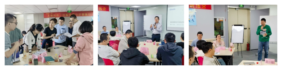 本次培训外聘了专业的组织与人才培养专家进行授课,在培训课程中,博天堂精品(中国)官方的国内与国际营销中心、产品部等,以及杰拓管理层的各个小伙伴分为五个小组,通过小组讨论、上台发言、随堂测验等互动形式,学习并了解到基于战略目标的组织执行力的重要性,目标设定的SMART原则与时间管理的方法,以及执行力提升的四大动力系统,现场学习氛围活跃,求知欲望强烈。