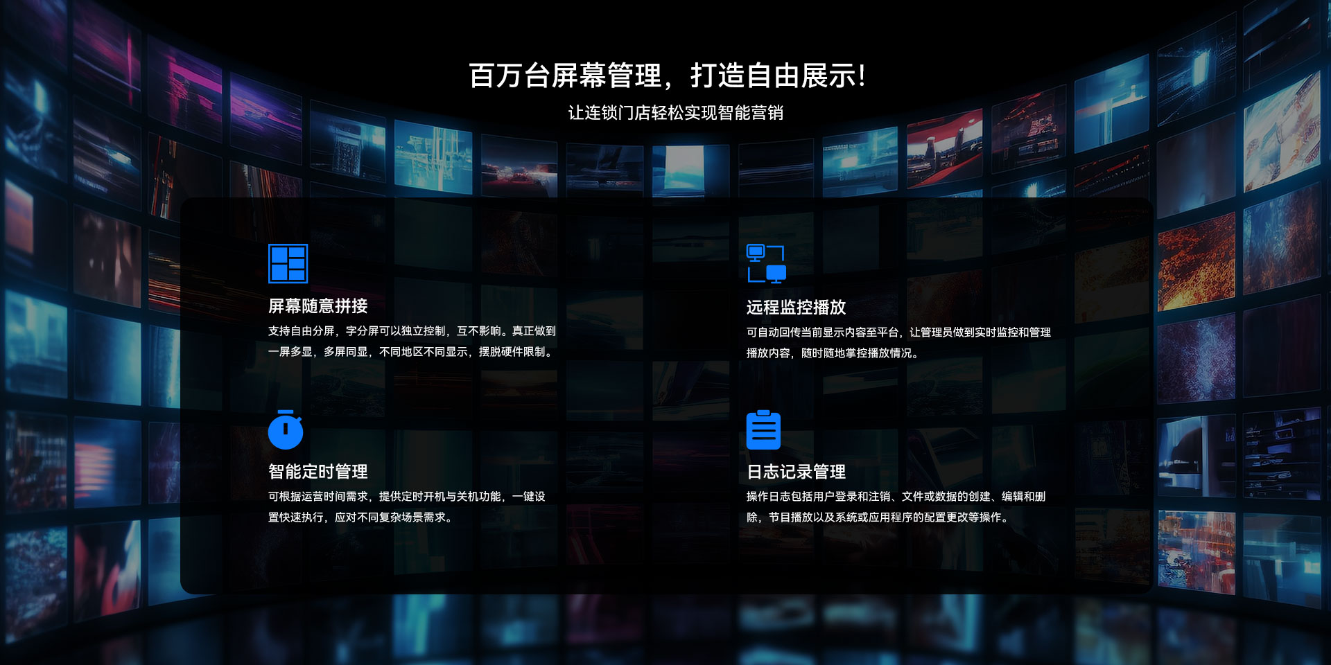 目前博天堂精品(中国)官方科技GDSM-ES系统覆盖市场上多形态网络智能显示终端,满足行业全产品业态需求,如广告机、LED显示屏、LCD拼接屏 、普通液晶电视等各种显示终端,广泛用于广告宣传、通知公告、指示引导。