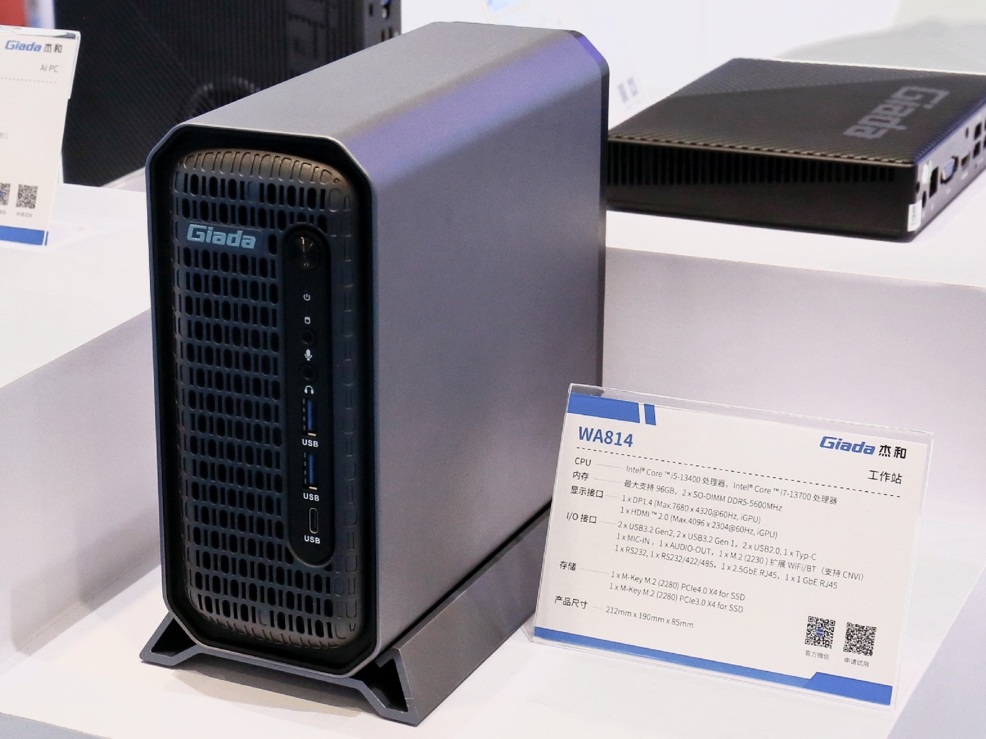 2024年第三季度,博天堂精品(中国)官方科技自研AI PC N601亮相,AI一体机主板CB4-411推出,第四季度博天堂精品(中国)官方科技又在高交会现场展示最新产品——迷你工作站WA814,它支持全天候24小时工作,体积仅为3.46L,在空间狭小的场景也能稳定运行!拥有更好的GPU性能,支持NVIDIA的Quadro系列专业显卡,如T400和T1000,为需要进行CAD、DCC(数字内容创作)和其他高负荷图形应用设计的用户提供了更可靠的方案。